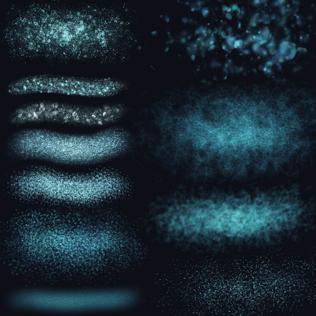 This brush pack contains 55 glitter brushes. You can see some examples in the preview photos.